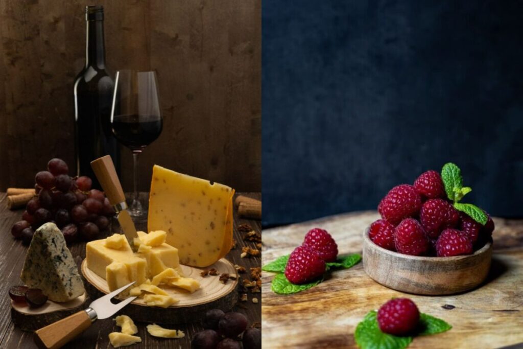 Як створити правильний настрій? Ось, до прикладу, розберемо моє фото в каруселі нижче. Перед вами пляшка червоного вина з кількома видами сиру.